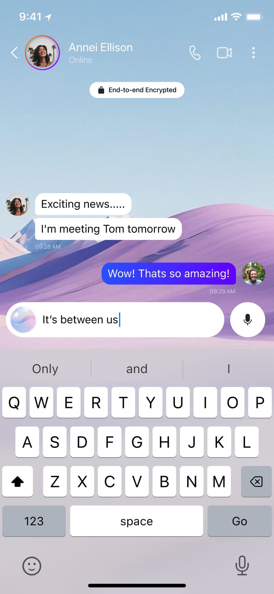 Your privacy is our priority. With end-to-end encryption, you can be sure that your personal messages stay between you and who you send them to.
